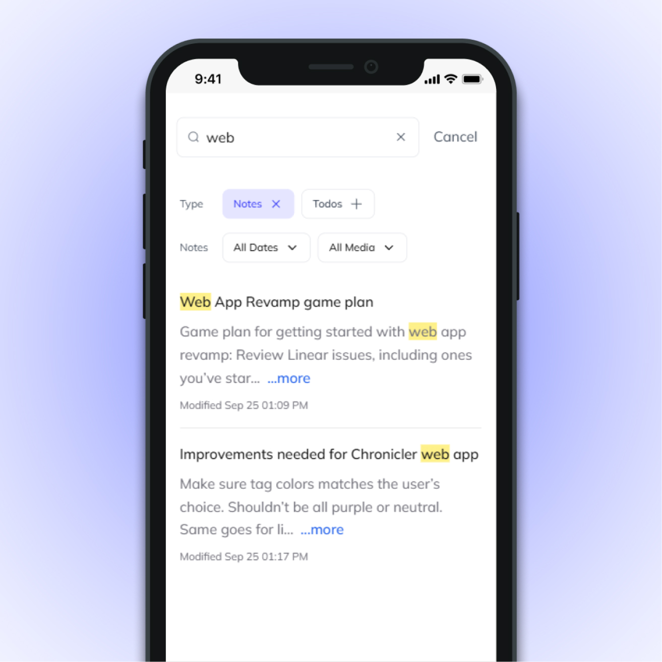 - When you query Chronicler for todos or notes (based on due date, related search term, etc.), you can only get a limited text response back.