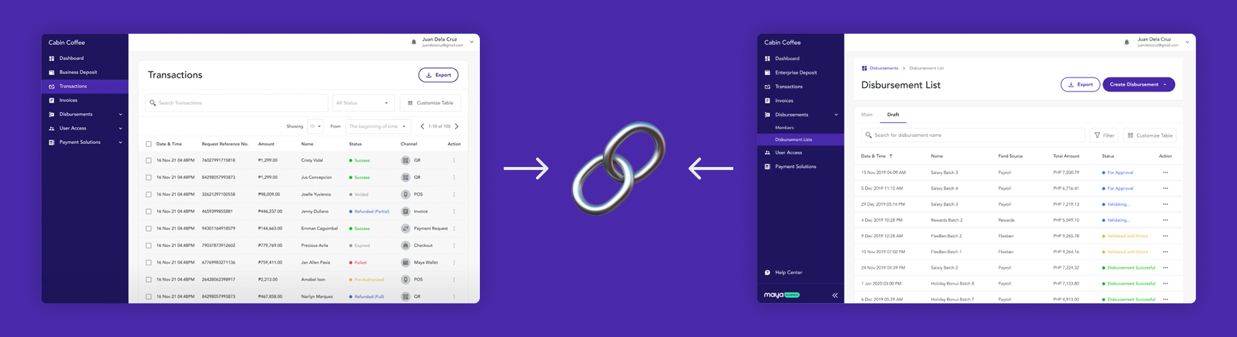 While Maya Business users can export CSVs of their transactions and disbursements...it’s difficult to see how these all fit together into the overall picture of their business.