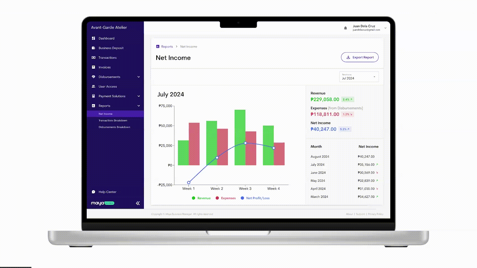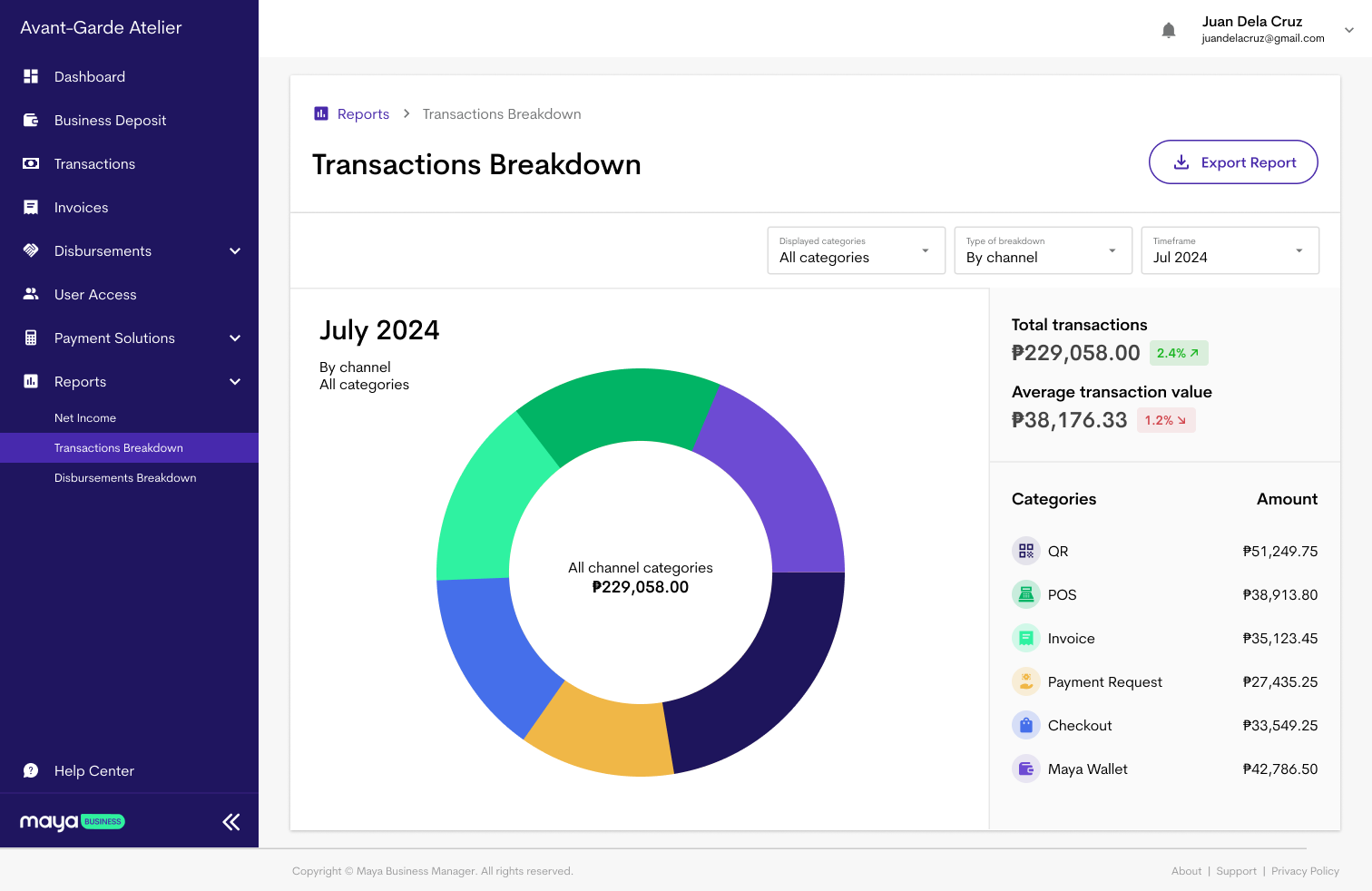 Get an overall picture of your business based on transactions + disbursements done through Maya.