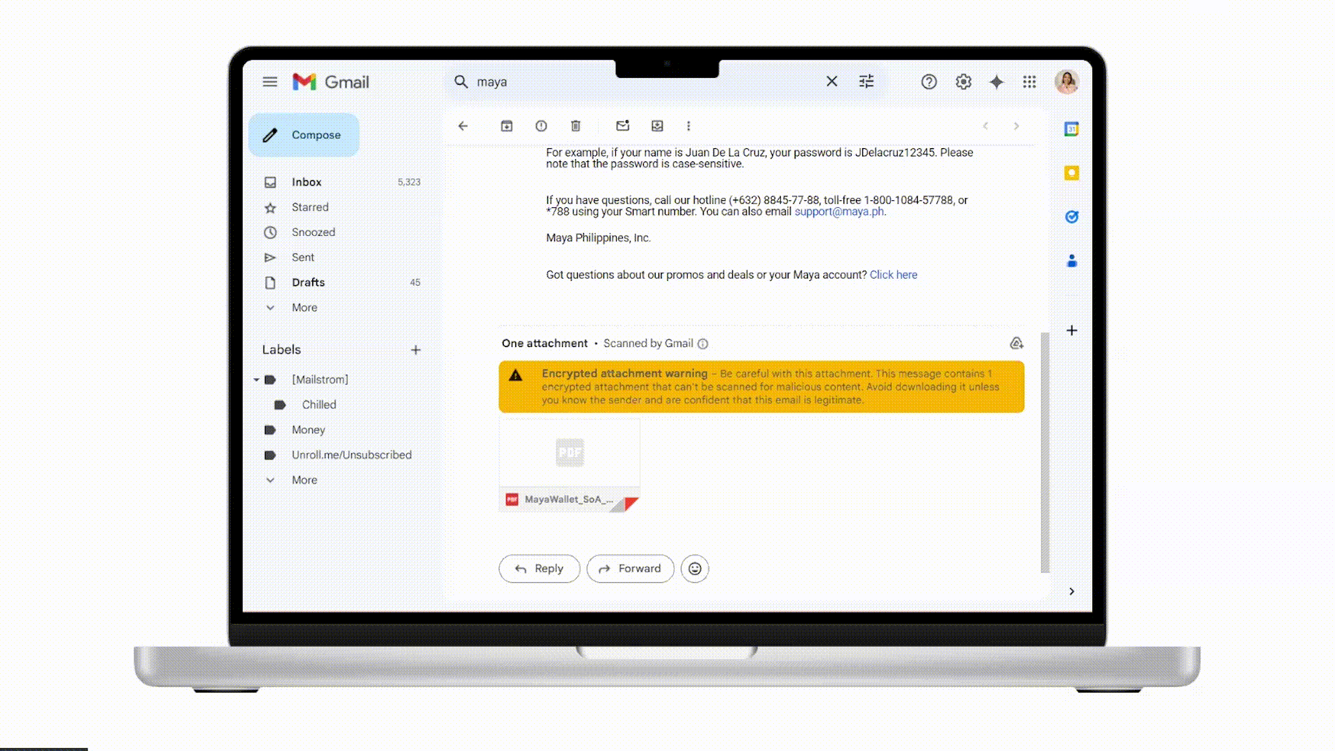 Maya Personal users cannot export statements on their own; they have to wait for them to be e-mailed.